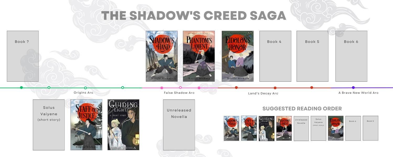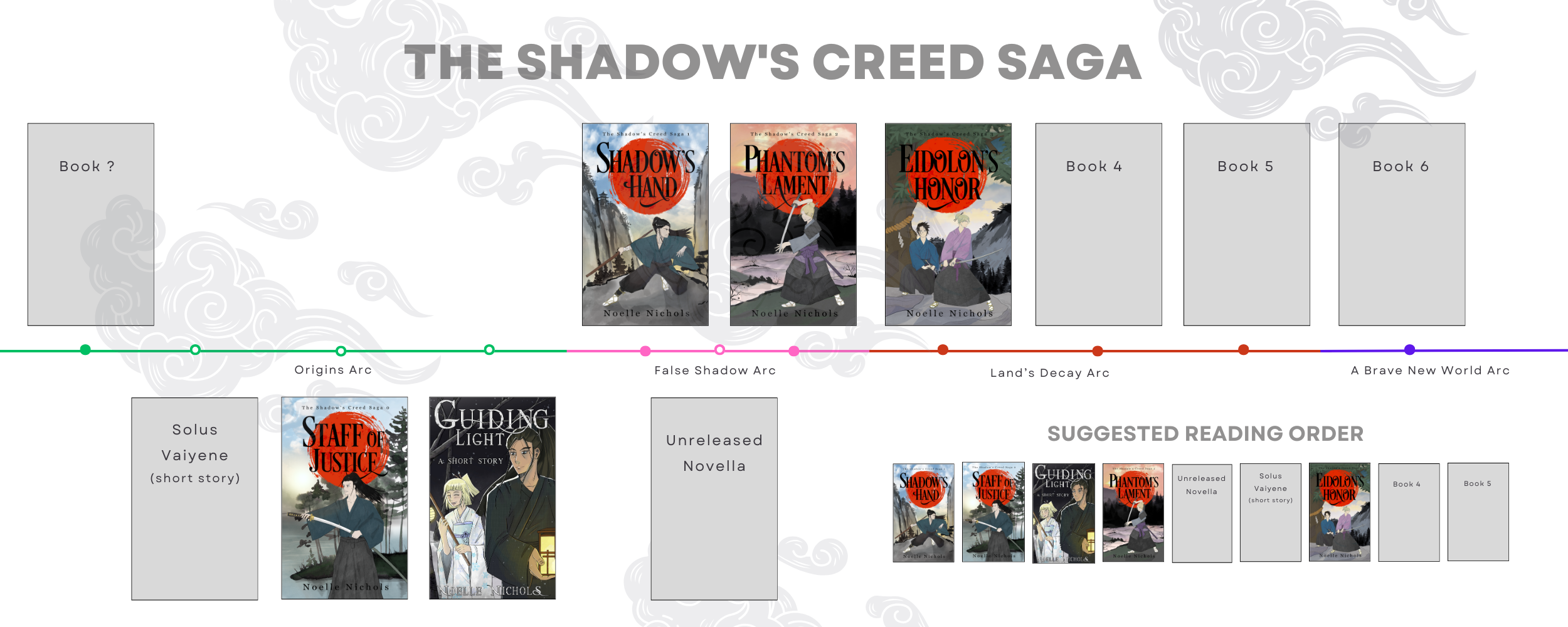 Not sure where to start reading The Shadow's Creed Saga? Here's an image with the series timeline, as well as a suggested reading order for the series.